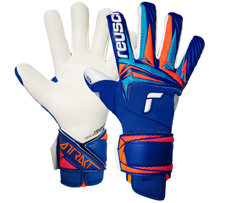 Confident goalkeeping starts with trust in your gloves. The Attrakt Gold X Guardian combines Reusch Grip Gold X latex for professional-level grip in all weather conditions with a snug Evolution Negative Cut that follows every movement of your hand. The AdaptiveFlex Closure System offers wrist stability without restricting motion, while added grip zones and ventilation details make this glove ready for top-level performance.Material Composition