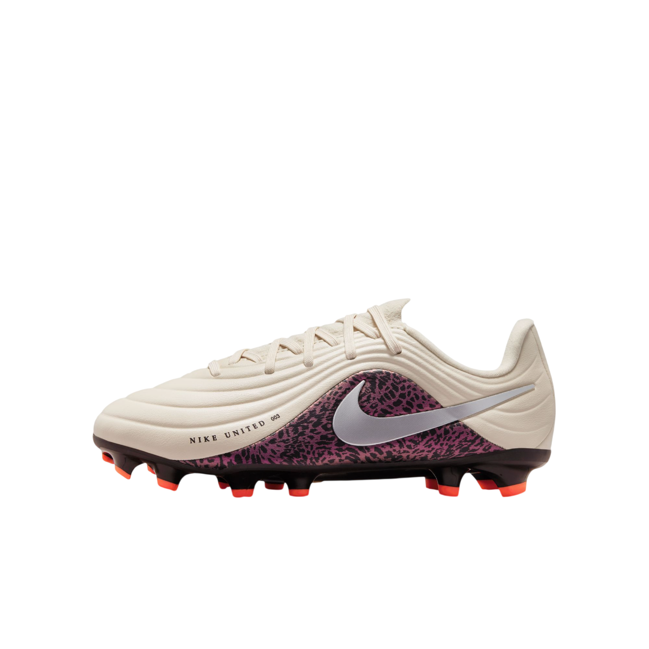 The Nike United collection celebrates athletes with wild control, like Naomi Girma and Patricia Guijarro. We paired rich burgundy tones with animal print-inspired graphics to represent how they attack on the field and go beyond what's possible.
