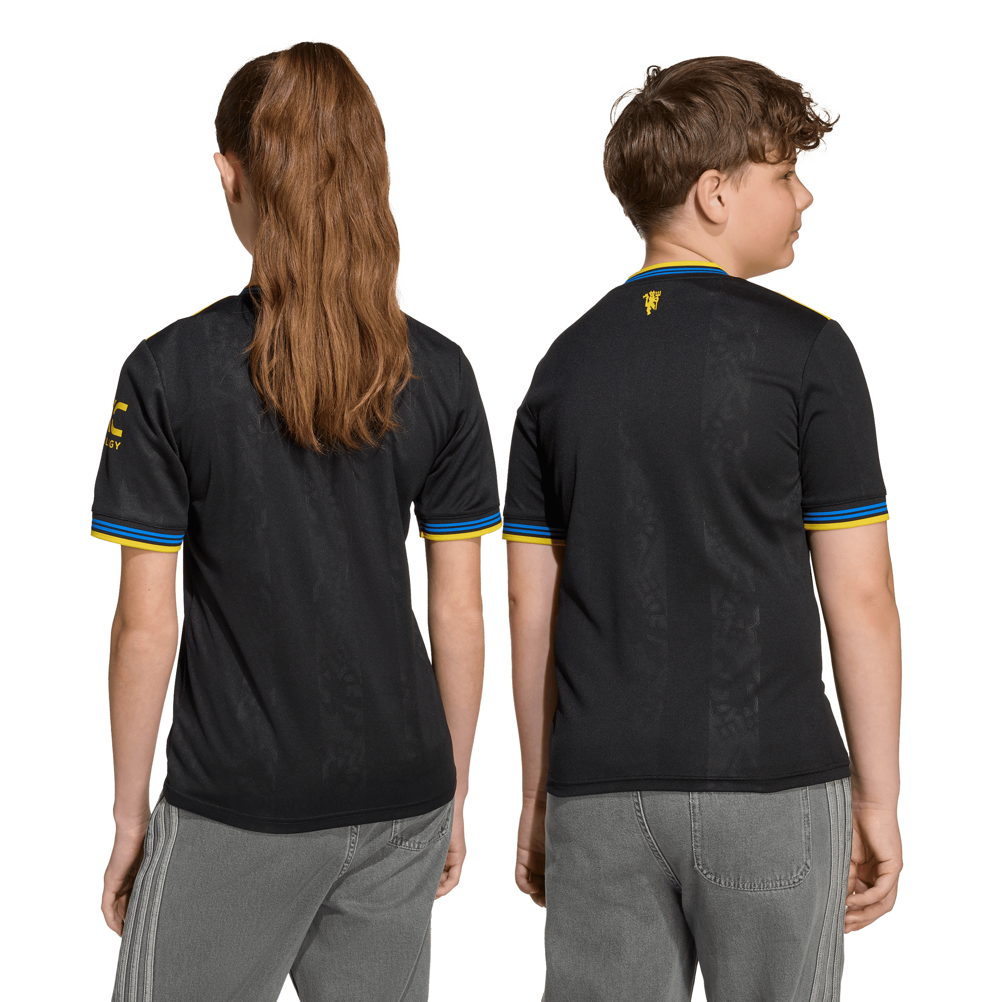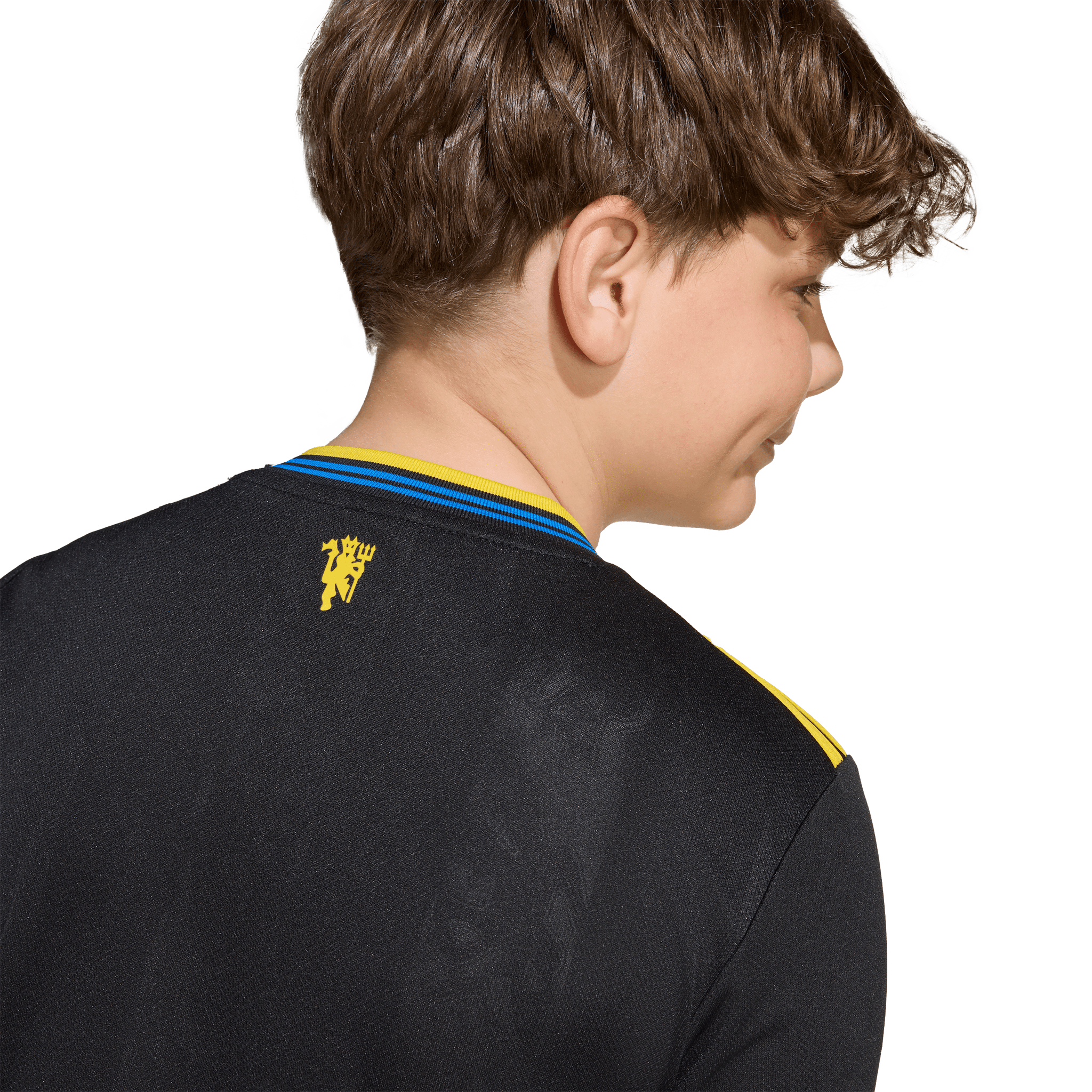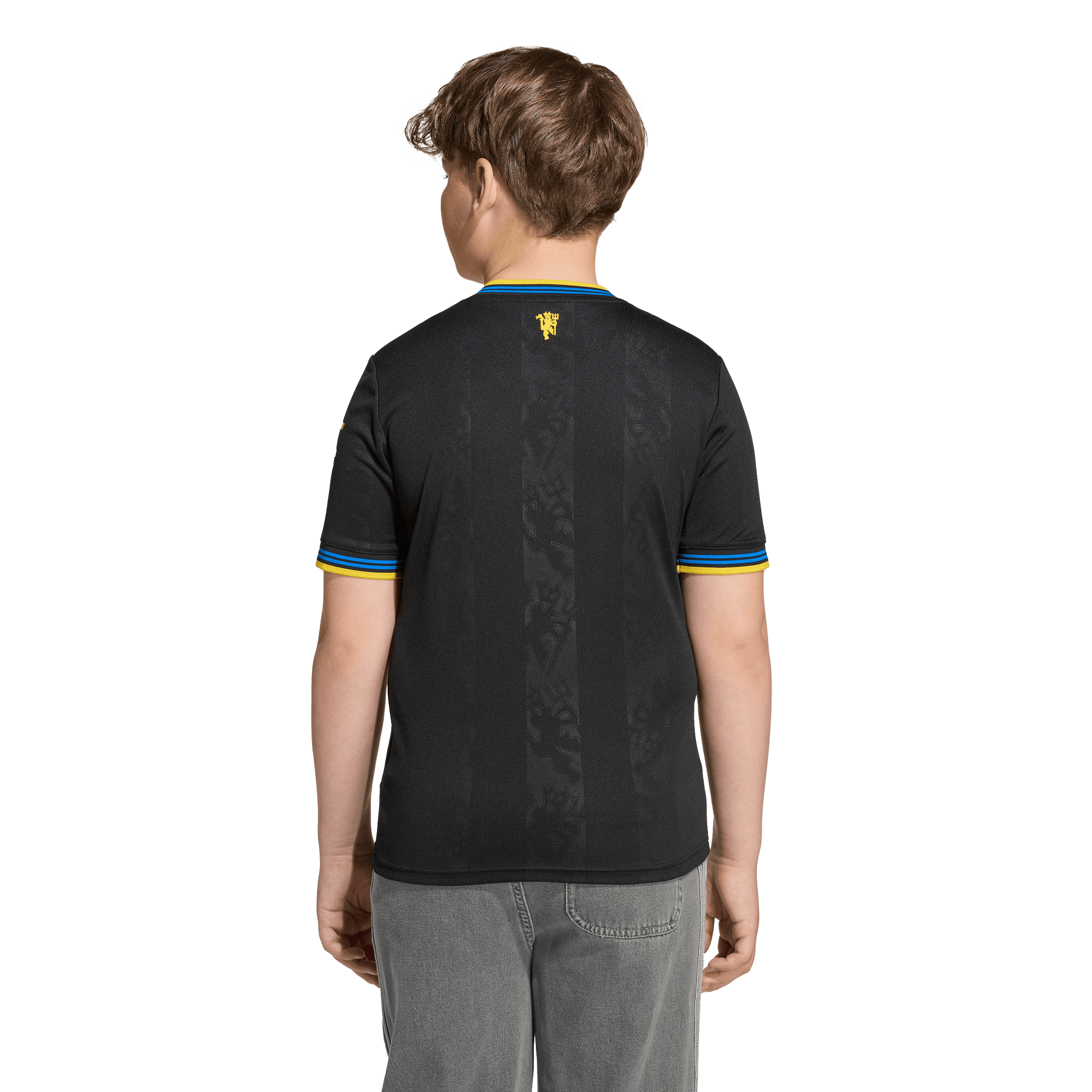 Part of a clean, classic adidas kit that will transport fans to a golden era. Finished in black, this juniors' Manchester United third jersey conjures some of the club's most iconic players and memorable away performances. A yellow Trefoil and club badge stand out on the chest while more subtle, devilish details are woven into the fabric. Moisture-managing AEROREADY keeps young fans comfortable while their team create new memories.