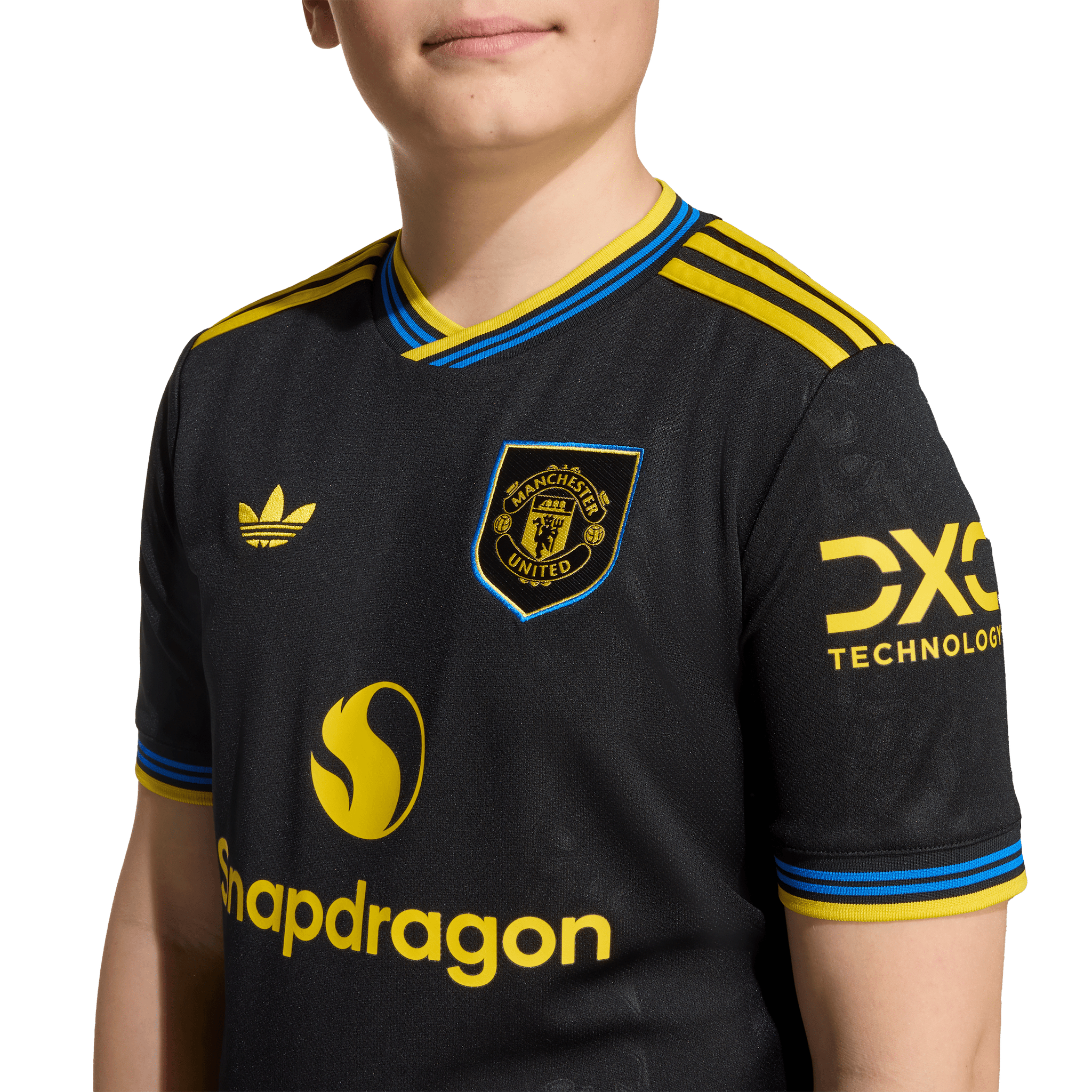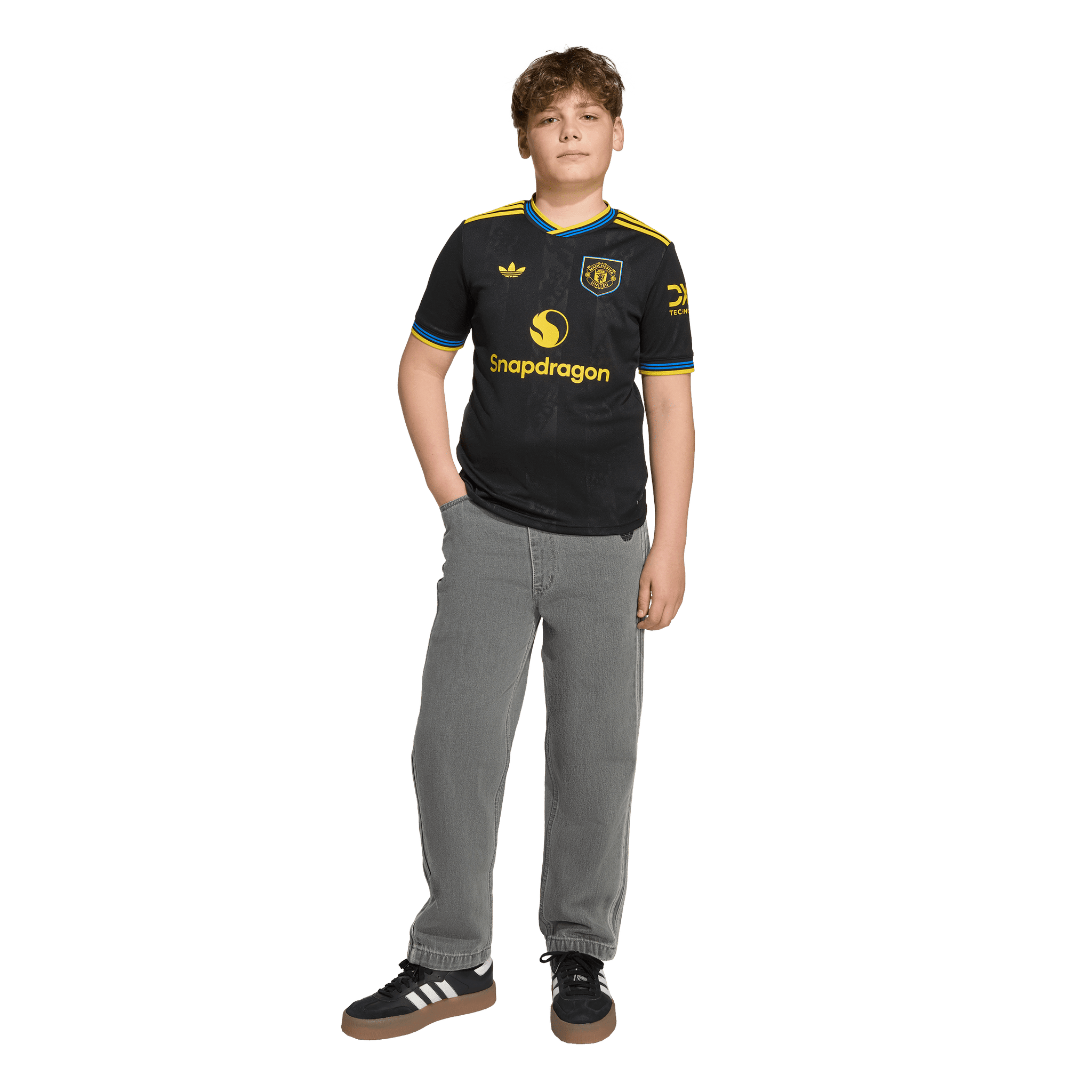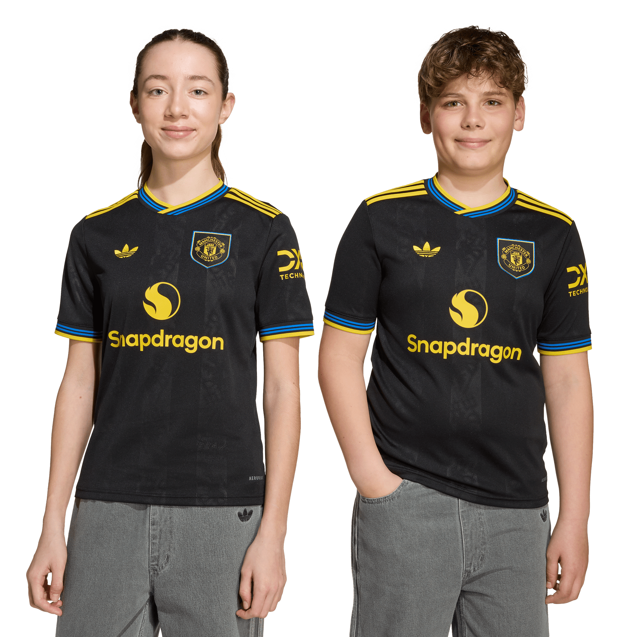 Part of a clean, classic adidas kit that will transport fans to a golden era. Finished in black, this juniors' Manchester United third jersey conjures some of the club's most iconic players and memorable away performances. A yellow Trefoil and club badge stand out on the chest while more subtle, devilish details are woven into the fabric. Moisture-managing AEROREADY keeps young fans comfortable while their team create new memories.