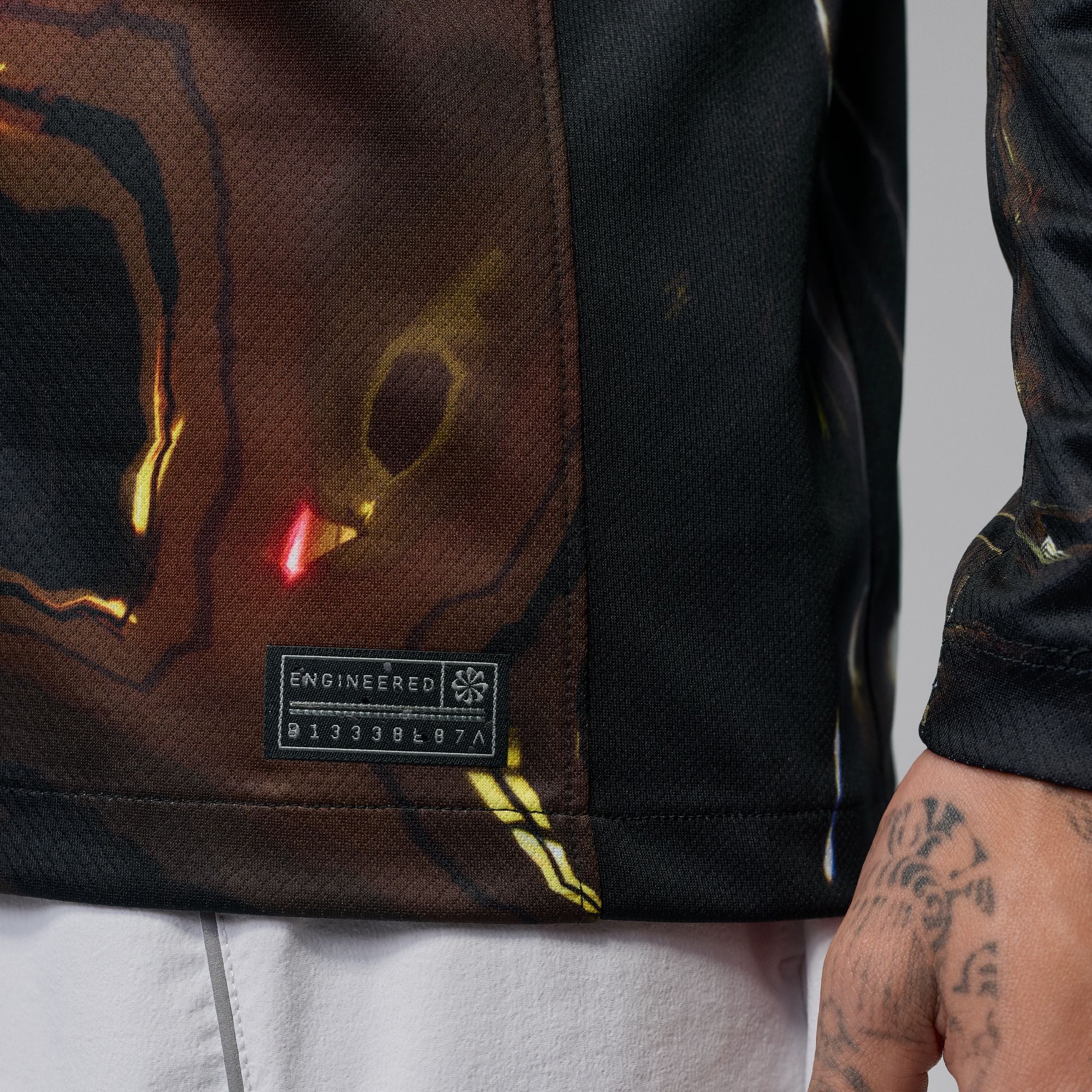 This special “Night Edition” jersey honors Jordan and PSG’s innovative history with a futuristic design inspired by Paris at night. The print shows the City of Light reflected in chrome, with fluid graphics that celebrate how this partnership is, once again, moving the sport forward.