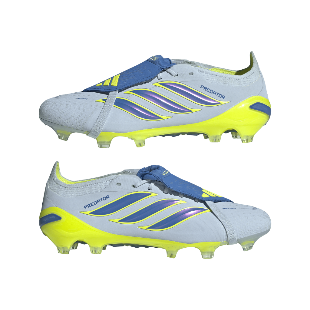 The Predator Elite Fold-Over Tongue Firm Ground Football Boots combine innovative mesh with cutting-edge Nanostrike technology, giving you control in front of goal. Iconic predator Powerspine tech for midfoot stability creates a stronger shot. The Primeknit upper offers softness and feather-light comfort, while integrated rubber grip elements provide optimal striking precision in both dry and wet conditions. The Strikeframe full-length plate offers optimal, lightweight traction for goal scoring, and the iconic fold-over tongue creates a smooth striking surface. adidas continues to redefine football footwear—equipping you with the tools to dominate the pitch and chase your goals with confidence.